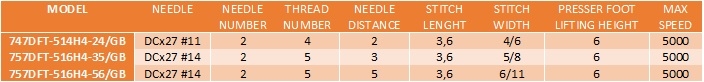 SIRUBA 700DFT - is a top front feed overlock machine with gathering device, with 2 needles and 4-5 threads depending on the model. The machine can gather the upper and lower part of the fabrics. Also it can use 25 mm width gather tape, the fininished product having 6 mm width.