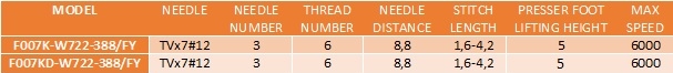 SIRUBA F007K/KD - is a interlock pocket lining sewing machine, with 3 needles and 6 threads.