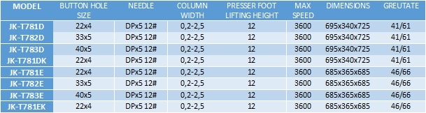 The models with K letter are specialized in sewing buttonholes on knitting material.
