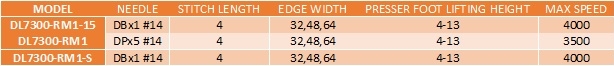 SIRUBA DL7300 - è una macchina da cucire a punto annodato completamente automatica, computerizzata. È dotato di un tagliente per bordi che lascia una sporgenza di 3,2 / 4,8 / 6,4 mm e può essere dotato di un dispositivo di legatura del nastro.
