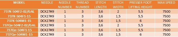 Le macchine con la lettera F sono per tessuti molto fini e quelle di tipo M per tessuti di medio spessore.