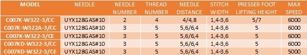 SIRUBA C007K/KD - è una copertura macchina con il bracio cilindro di appiattimento, con 2-3 aghi e 4-5 fili a seconda del modello.