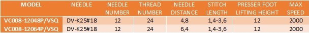 SIRUBA VC008 - è una macchina da cucire a filo elastico, con letto cilindrico, con 12 aghi e 24 fili.