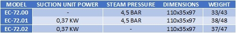 ROTONDI EC-72 - sono compatti smacchiatori con il tavolo e il braccio sono realizzati interamente in acciaio inossidabile.