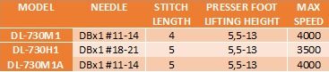 Le macchine con la lettera M sono per tessuti di medio spessore, quelli con lettera H per tessuti spessi.