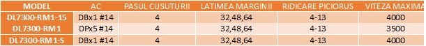 SIRUBA DL7300 - este o mașină de cusut liniar, computerizată, complet automată. Dispune de cuțit de rihtuit care lasa o margine de 3,2 / 4,8 / 6,4 mm și poate fi dotată cu dispozitiv de coasere bentiță.