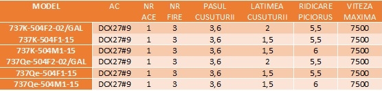 Mașinile cu litera F sunt pentru țesături foarte subțiri, iar cele cu litera M sunt pentru țesături de grosime medie.