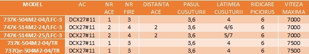 SIRUBA 737K/737Qe/747K - este o mașină de surfilat, de mare viteză cu 1-2 ace și 3-4 fire, în funcție de model, care aplică elastic la costume de baie, lenjerie, îmbrăcăminte sportivă. Este capabilă să atașeze elastic și la materiale nețesute cum este îmbrăcămintea pentru uz medical.