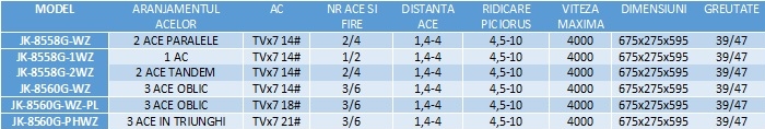 JACK JK-8558G/JK-8560G - este o masina cusut liniar cu 1,2 sau 3 ace in diferite aranjamente in functie de model, care face cusaturi in lant.
